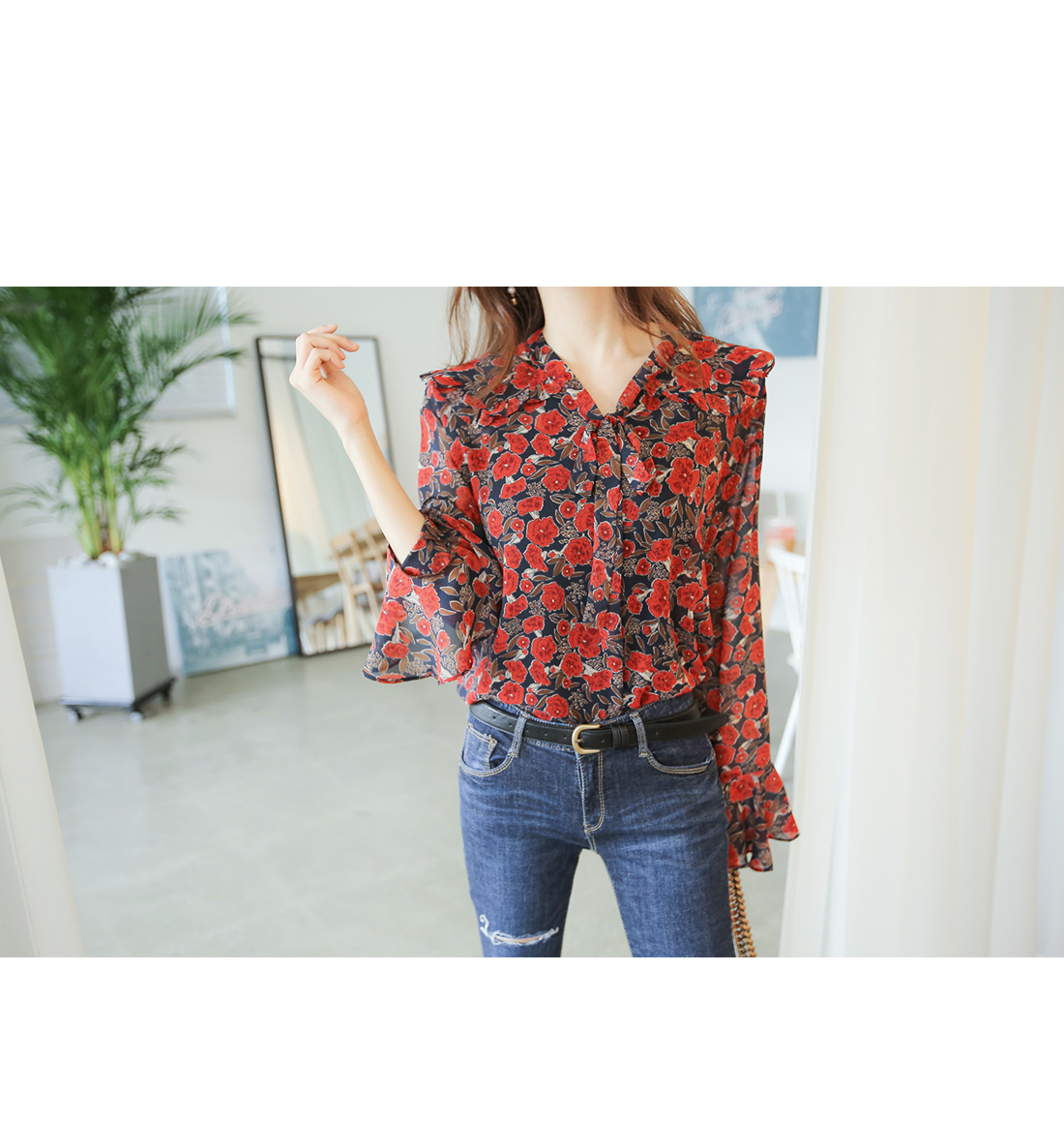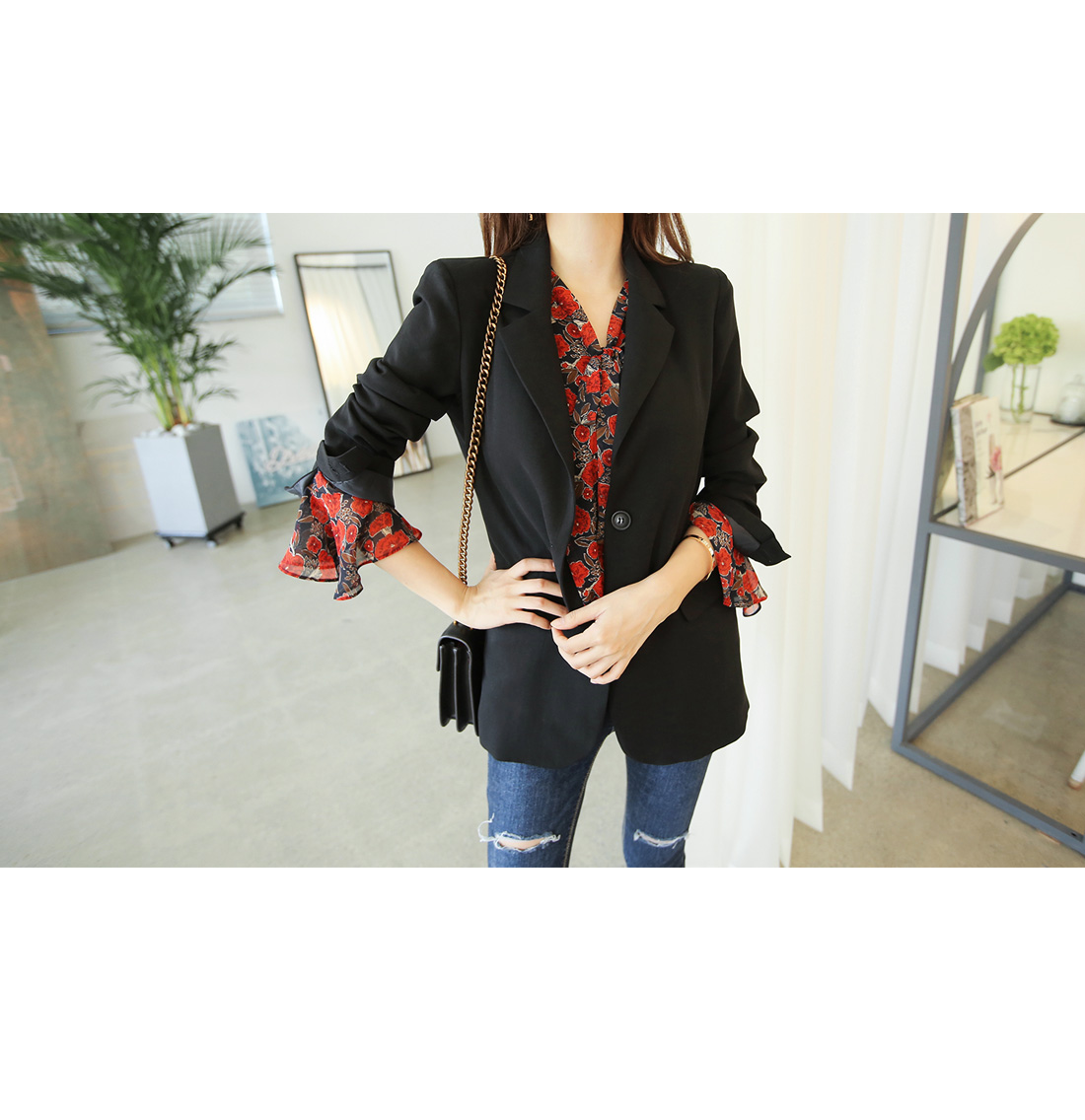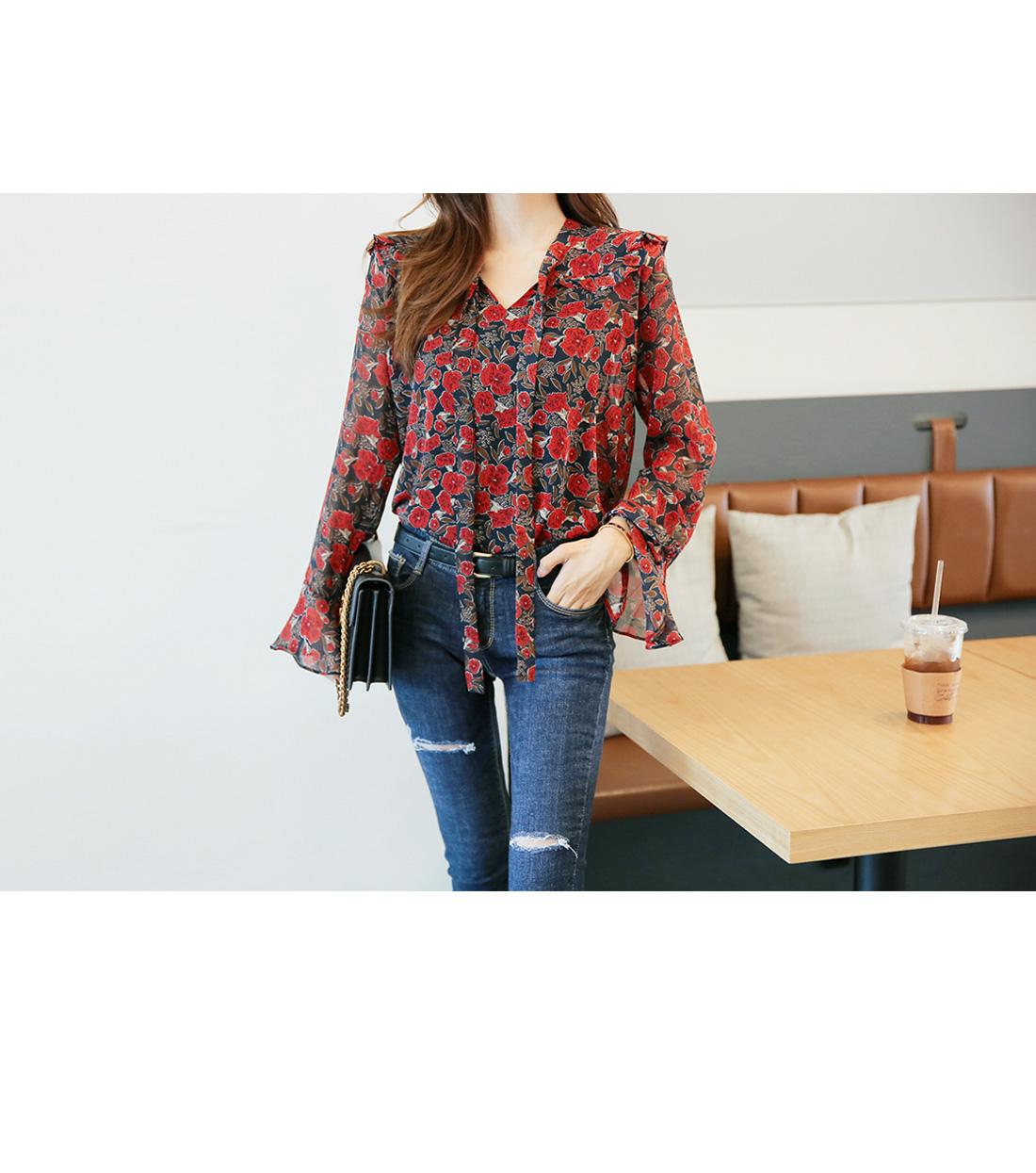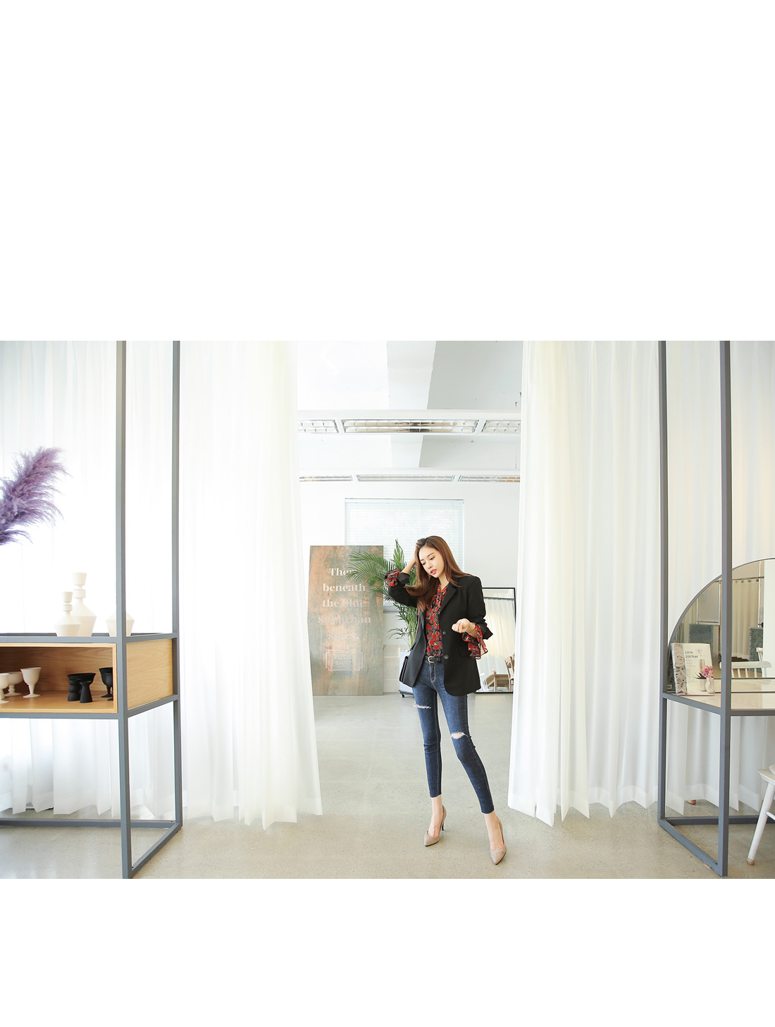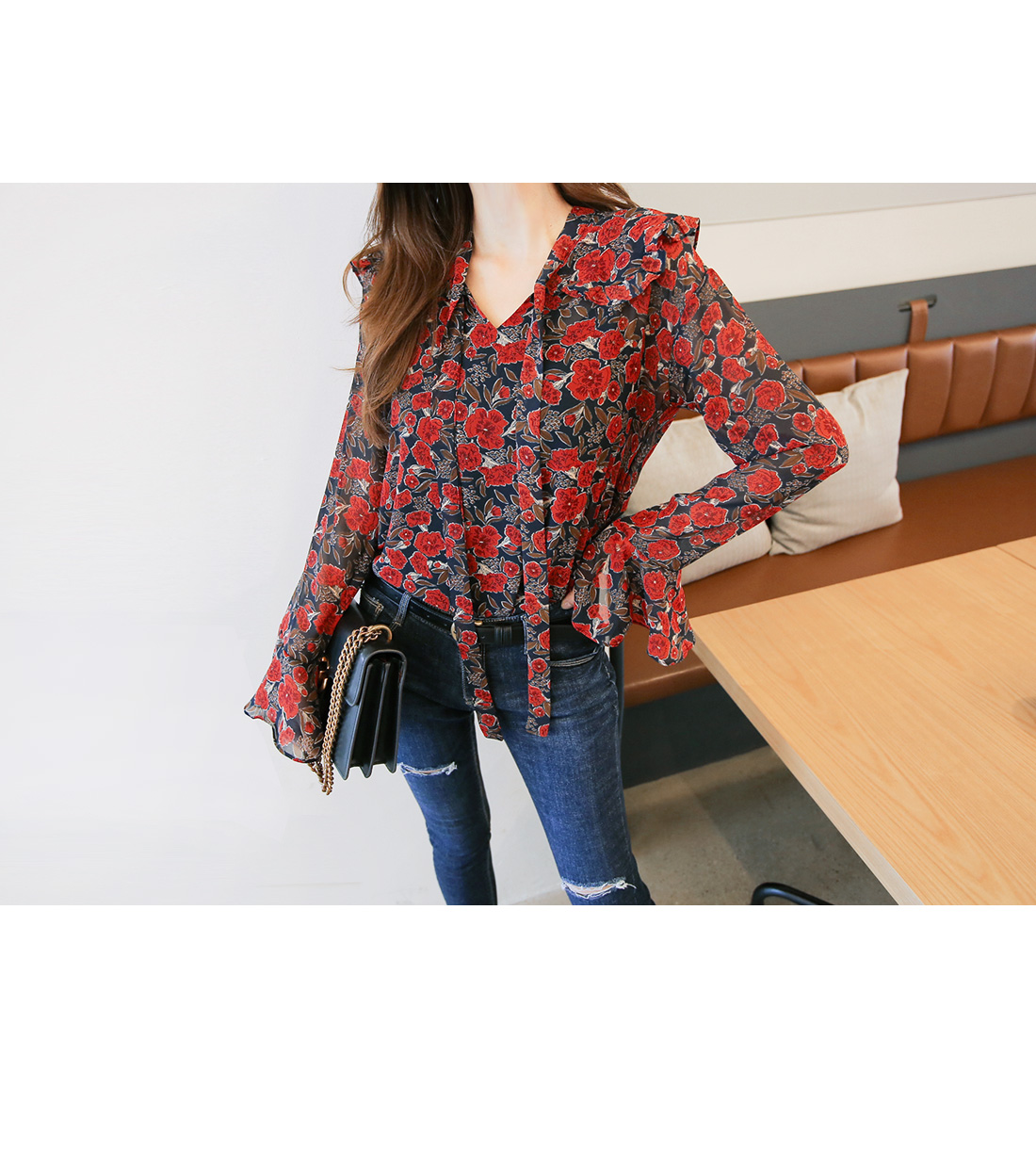 페미닌한 무드를 더한 블라우스 아이템이랍니다.