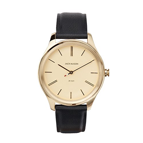 Jack Mason Slim Yellow Gold Bezel, 2Hand Gold Dial w/Black Leather Strap