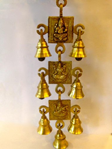 AONE INDIA Brass Gift Item Ganesha/Lakshmi/Saraswathi 3 Bell Set Set Bell(Yellow, 31 Cm X 8 Cm) + Cash Envelope (Pack Of 10)
