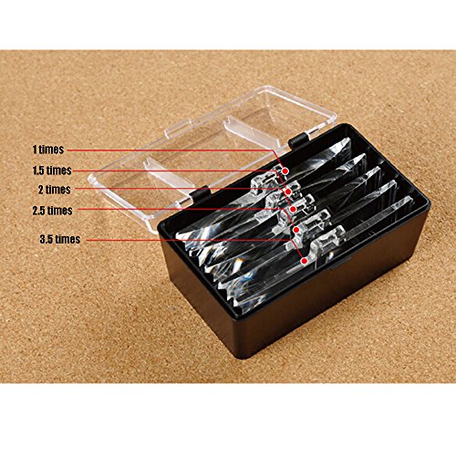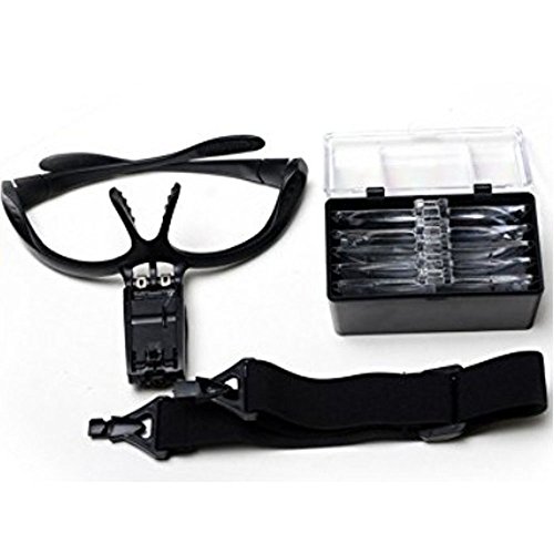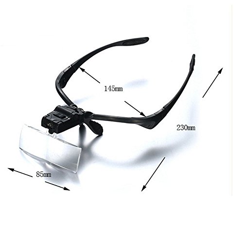 -. Feature : Easily used for reading books and newspapers,drawing picture,handicrafts,appreciating flowers and miniature landscape. / This magnifier is attached with five elongated lens that can change magnification.External specification of new lens:85mmX8.5mm.Five kinds of multiples:1.0X,1.5X,2.0X,2.5X,3.5X. / Open LED lighting source in poor light. / It is advisable to adjust lens angle and LED light irradiation angle to ensure that light source can irradiate the surface of viewed object accurately and make it more convenient use. / Common bracket-type magnifiers can easily fall off during use because lens and LED part are quite heavy.This produce can solve this problem completely.If you need to wear this magnifier for long time,it is advised to change bracket into headband state,which can make work comfortable.