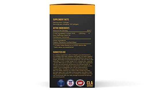 - Feature : PURITY MATTERS! Our Customers Have Purity In Mind That Is Why They Can Tell Our Conjugated Linoleic Acid Is Better Than the Rest of the CLAs and Tonalin - We Have the Highest Natural Purity You Can Find In Weight Loss Supplements And Products - If You Want a Superior Quality Product That Delivers Results This Is the CLA for You - Our Customers Feedback Speaks for It Self - Read Our Reviews! See Sarahs RESULTS and other satisfied customers in the images to the left. / GET EDUCATED! This Is a Science Backed Weight Loss Supplement - And We Will Help You Reach Your Goals! Buy Now and Get a 30 Day Ticket to Our Weight Loss and Fat Burning Concierge Program Where You Can Get All Your Weight Loss Questions Answered PLUS Our CLA Instruction Manual For Optimized Weight Loss Results Including Blueprints Recipes And Tips for Weight Loss Snack Foods **No Risk - 100% Satisfaction Guarantee! / BEWARE - ACT SMART! Pure CLA is a Very EXPENSIVE Raw Material. There Are Many Generic CLAs On The Market With Quality That Is Parallel To The Price. A Lot of Other Brands Selling CLA Cut Corners By Using Cheap Raw Materials With Lower Purity. The Saying / DELIVERS RESULT! CLA Is a Supplement That Has Been Studied Very Thoroughly and has Hundreds of Studies (including University of North Carolina, the University of Memphis and the American College of Sports Medicine) Proving Effectiveness For Weight Loss and Fat Burning as a Stand Alone Weight Reduction Product. But It Also Works Hand in Hand With Our Fat Burner Superior - Pure Green Coffee Bean Extract - Raspberry Ketones - l-carnitine - Carb Blocker - Metabolism Boosters - Diet Kits Or Other Sports Nutrition. / EXCELLENCE and SATISFACTION! We are a small American family run business and put all our efforts in having 100% Satisfied Customers and The Highest Quality Products. Our CLA Has Strong Appetite Suppressants Benefits - Lose Weight - Burn Fat - Reduce Waist Size - Promote Muscle Growth - Metabolism Booster. We Apply Quality Controls At Every Phase of the Product Development. From The Moment The Raw Material Enters The Plant, Until Our Finished Products Enter The Store, We Ensure Every Product Meets Our Incredibly High Standard Of EXCELLENCE. Our Products Meet The FDA Standards And Each Ingredient is Issued a Certificate of Analysis. Weight Loss Development's CLA is of Superior Quality, containing 80% Pure CLA - the HIGHEST QUALITY on the market. Our success is based on our clients' results. CLA has been highlighted several times in a famous DR. SHOW on TV. 6.05 Oz. Made in USA.