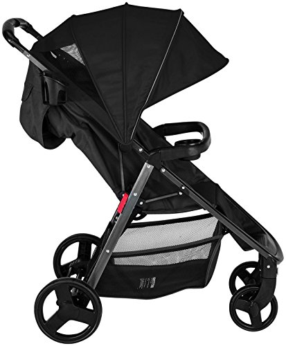 -. Feature : One-hand, self-standing fold / Compact, lightweight, and portable / Padded multi-position reclining seat / 5-point harness system with harness pads / Extra-large canopy with ventilation window