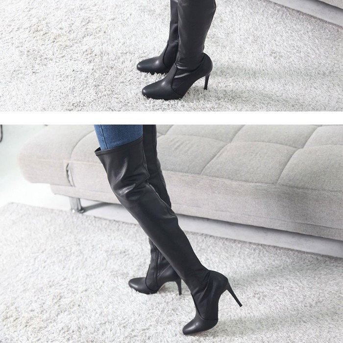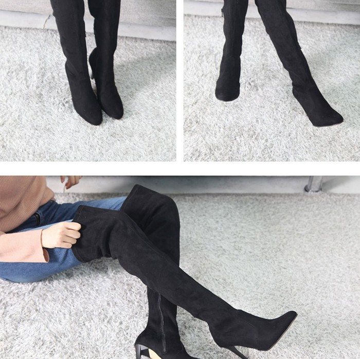 商品名:ロングブーツ レディース ピンヒール ポインテッドトゥ ニーハイブーツ 2017 秋冬 ファッション 靴 婦人靴