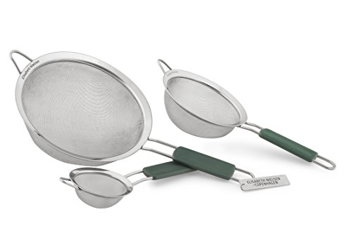 Mini strainer as sifter for powdered sugar; Med. sieve for baby food; Lg as quinoa or pasta strainer