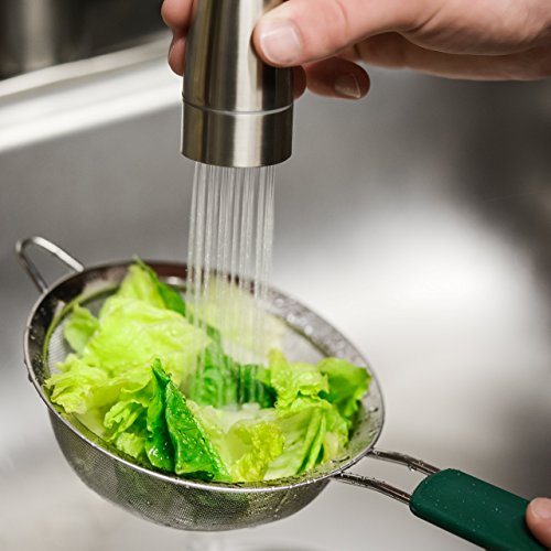 Durable 18-8 fine mesh strainer, heat safe soft silicone handles and extended bowl rests. Dishwasher safe.