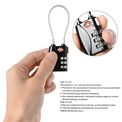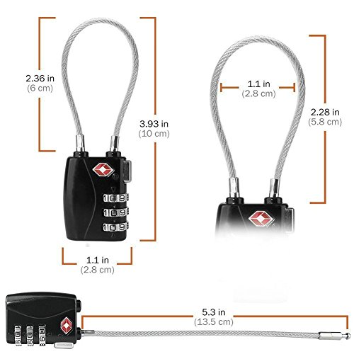 -. Feature : TSA-Approved,Material: durable zinc alloy / Resettable to 1,000 Possibilities - Set a combination that you won't forget from 1.000 possible combinations. / Sested uses, lage, backpacks, bags, small cabinets, briefcases, computer bags / size (H*W*T): 1.57*1.18*0.39inch; Total height: about 3.9inch / 30 Days Money Back and Lifetime Warranty!