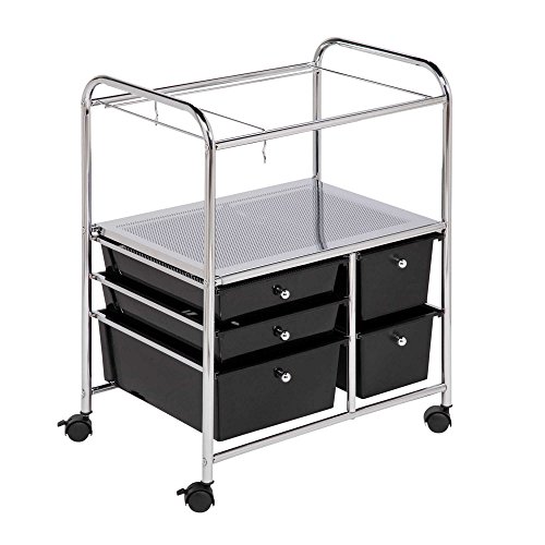 - Feature : Keep all of your work supplies and projects neat and organized with this file cart's heavy metal base that supports your heavy files, while the top filing space holds your documents / Maintain your office supplies and important papers in the five plastic drawers with sleek chrome knobs / 4 smooth-rolling casters allow easy mobility and the ability to lock in place for safety / Honey-Can-Do file cart is made of 80% steel and 20% plastic / Cart is a stylish black with chrome finish