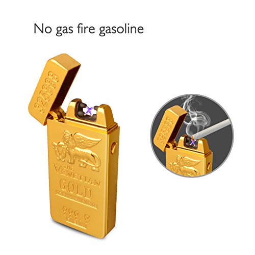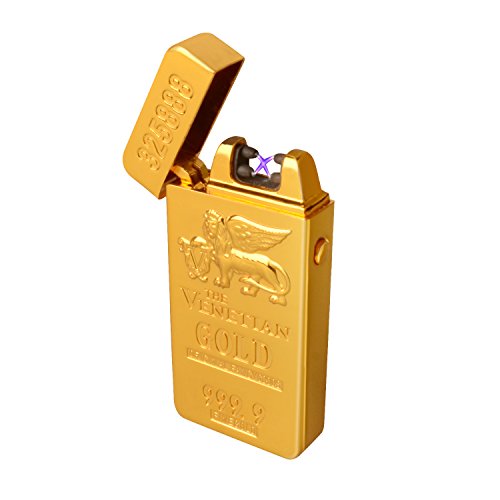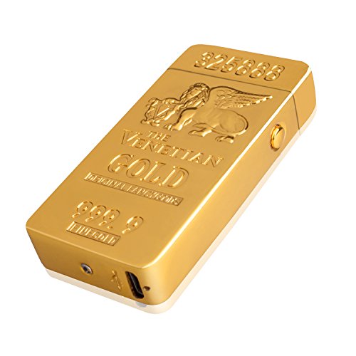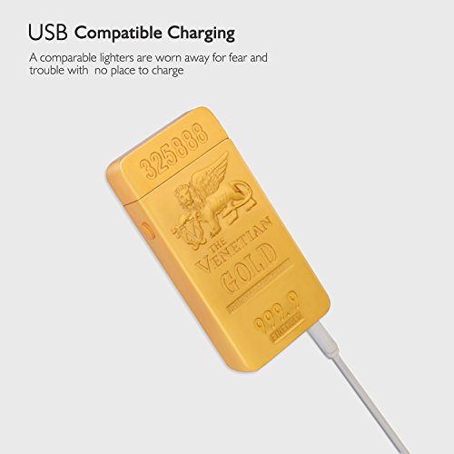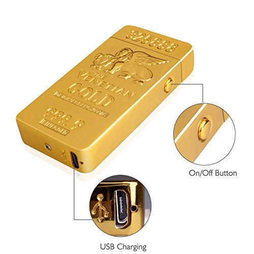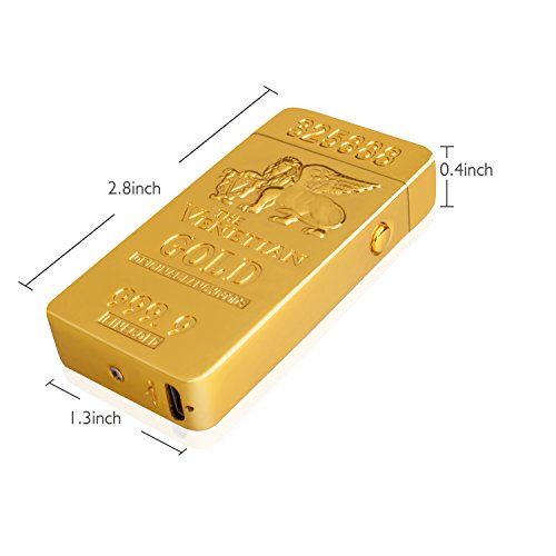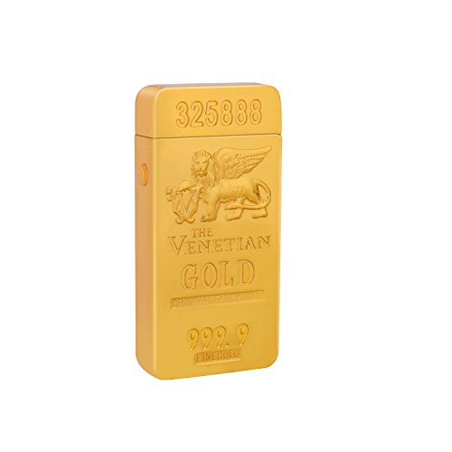 Exquisite Design: Bullion design electric arc lighter makes it looks like real 999 gold bar; 4 curved patterns Lion/Leaf/Dragon/Phoenix for your customized choice.