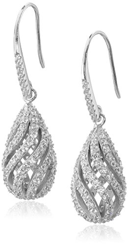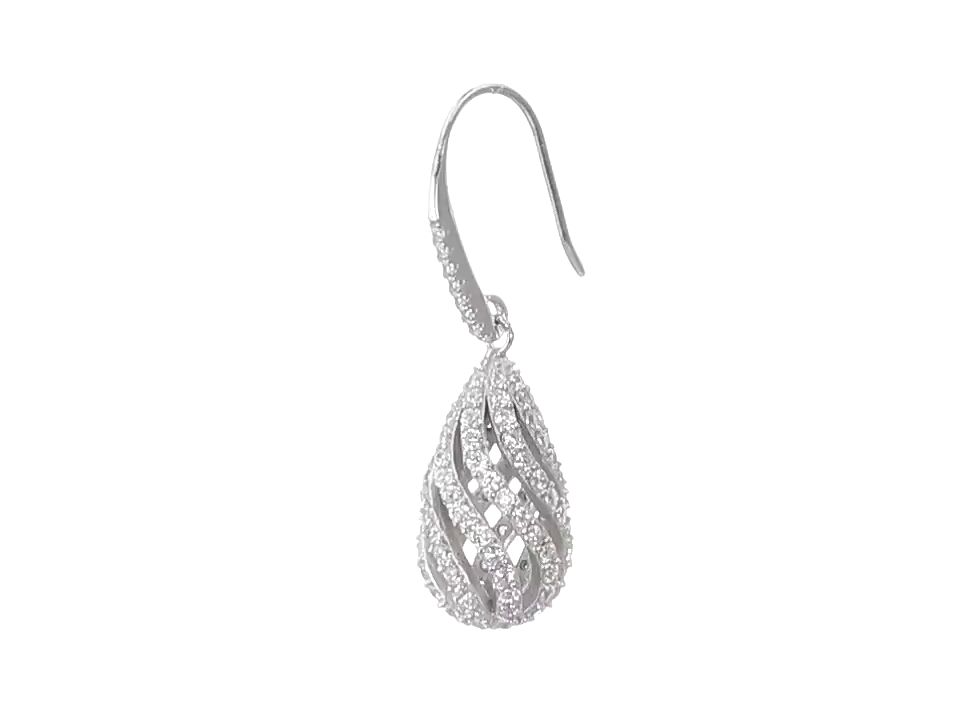 925 Sterling Silver 21mm AAA Cubic Zirconia Teardrop Cage Drop Earrings
