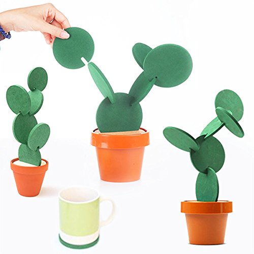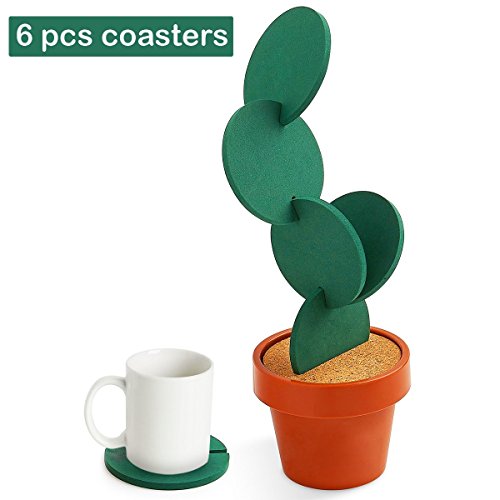 - Novelty and Funny Design: 6 Pieces Coasters can be stored inside a Flowerpot Holder; DIY green coasters can be interlocked to create a Cactus Shape or many creative variations.