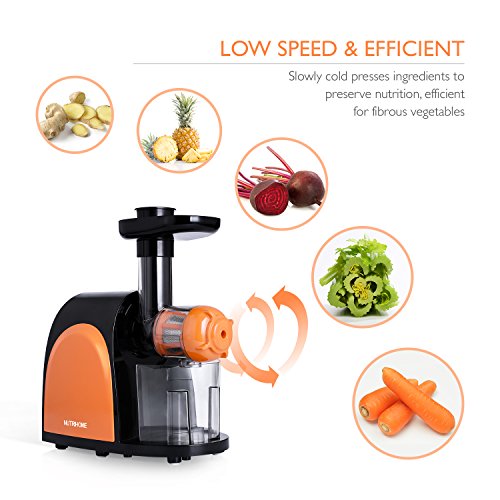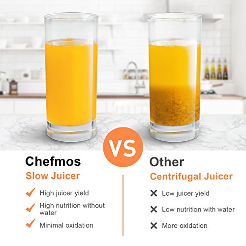 ✔ Strong squeeze & Reverse function-Compared with centrifugal juicers, the cold press juicer with spiral squeezing and reversing function, do not need to add any water during juicing process, while removing pulp and leaving vegetables juice and fruits juice with fresh and smooth taste for you.