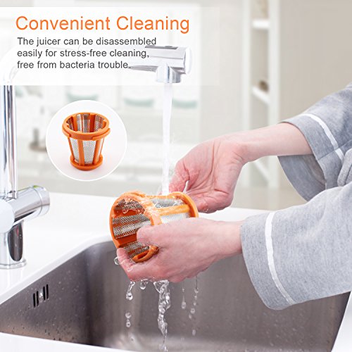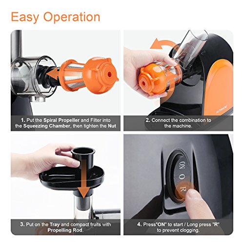 ✔ Food grade materials & High quality- Food-grade materials and stainless steel for spiral propeller and filter, making moms rest assured about the quality of food supplement for babies. Safer bladeless design of the masticating juicer allows both adults and children to operate without worrying about accidentally injuring fingers.