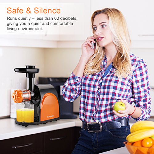 ✔ Time saving & No excessive noise- Bigger diameter mouth of the slow masticating juicer saves time for cutting fruits and vegetables, cup of juice in just 1 minute. Powerful but quiet motor that makes juice quickly with less than 60 decibels. Lower vibration, no excessive noise, let you enjoy the pleasure of juicing.