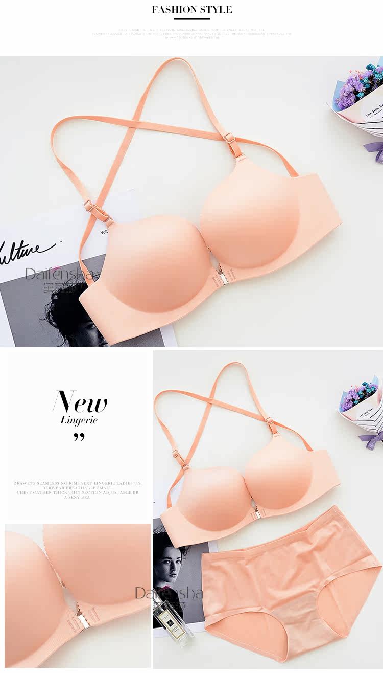 欧美交叉美背无痕内衣套装 前扣文胸无钢圈磁性胸罩小胸聚拢