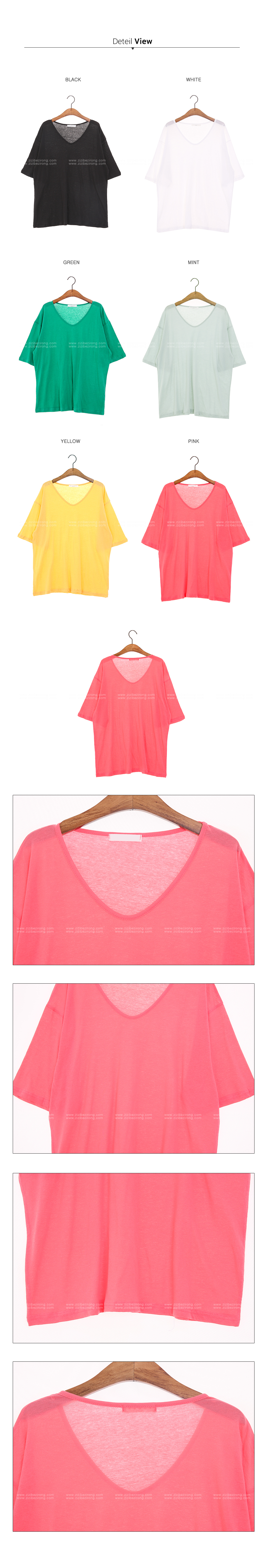 살짝 라운드지는 느낌의 V 네크라인으로,