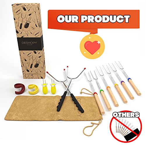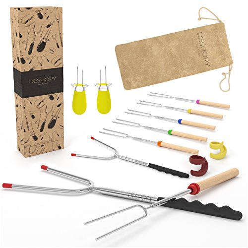 Marshmallow Roasting Sticks-Smores Sticks-Stainless Steel Roasting Sticks-Bonfire Sticks-Campfire Accessories-Сampfire Extendable Forks-Smores Kit-Marshmallow Set-Marshmallow Roaster- Great Gift