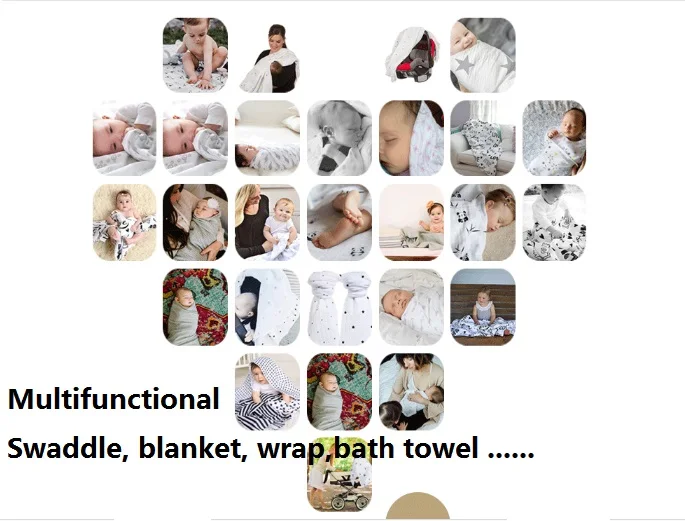 function:Baby swaddle, blanket, wrap, envelope, bath towel,