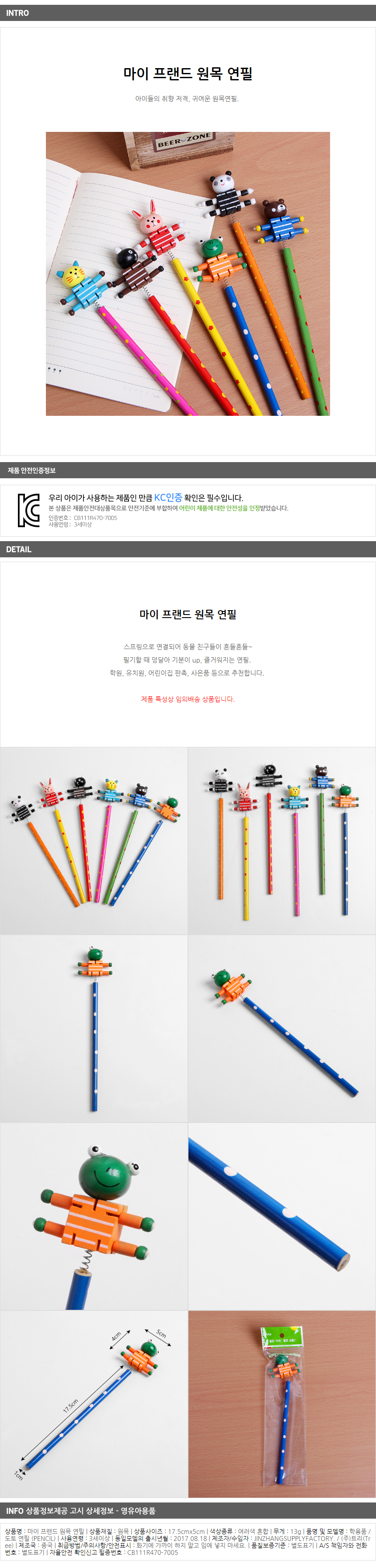 공산품명 및 모델명 동물인형 캐릭터 원목 연필 10P세트|1233080세트10