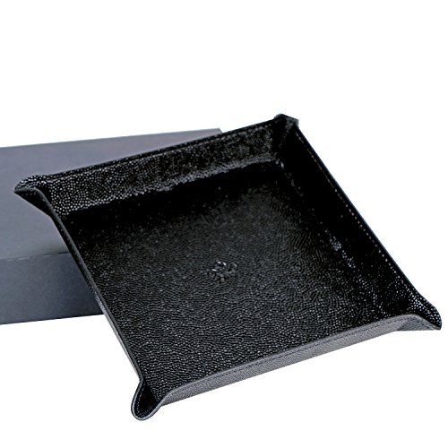 4 Queens Fully PU Leather Jewelry Catchall Key Phone Wallet Coin Tray Caddy Bedside Storage Tray(Black Chili PU)