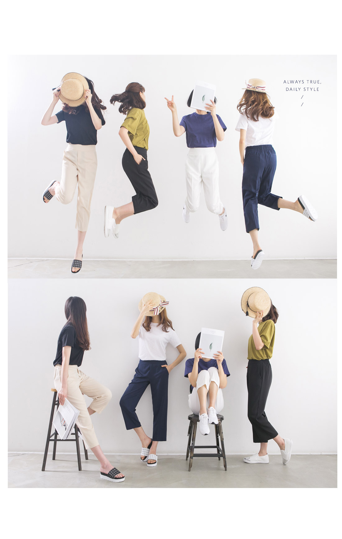 와이드 핏이라 발목이 살짝 보여져 핏감마저 이쁘게 연출해 드려요