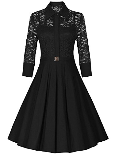 -. Feature : Material: 10% Lace + 55% Cotton + 30% Chinlon + 5% Spandex / Pattern: Vintage 1950s Style 3/4 Sleeve Lace Flare A-line Dress / Zip to Center Back,Lace contrast for Top,Invisible Buttons Down,Decorative Waistband Included. This Vintage inspired dress will never be out of fashion, your perfect choice for Halloween Party,Cocktail,Wedding and Formal Occasions. / Please Pay more attention to our Size Chart when you ordering. Manufactured & sold by Wincolor. Comes with 100% guarantee of friendly after- sales Services
