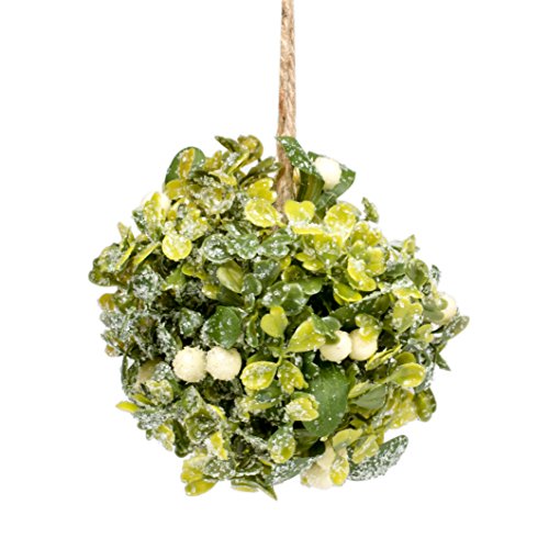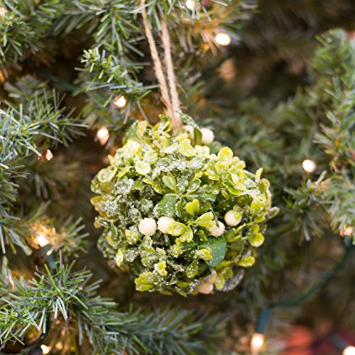 Boxwood Like Greenery and Berries 4 inch Round Christmas Mistletoe Ornament