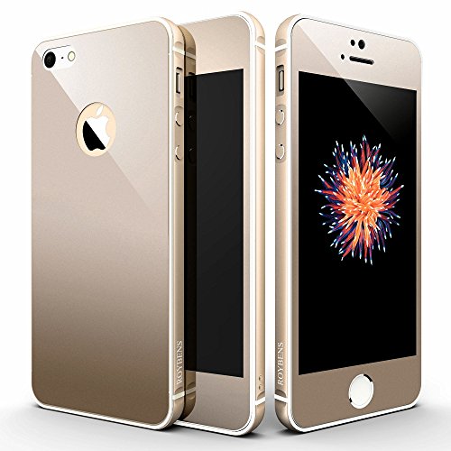 iPhone SE Case Rose Gold, Roybens [Cute Pink] Rubber Inner Surface Metal Bumper + Colored Rose Gold Front and Back Tempered Glass Screen Protector for Apple iPhone SE (2016) & 5s (2013)