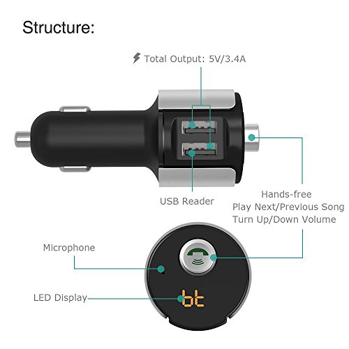 Honest kin 3.4A Dual USB Car Charger with Wireless In-Car Bluetooth FM Transmitter Radio Car Kit MP3 Player with LED Display Hands-free Universal for iPhone iPad iPod Samsung Android