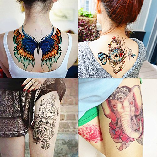 DaLin 4 Sheets Temporary Tattoos, Butterfly, Rose, Elephant