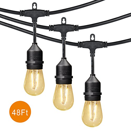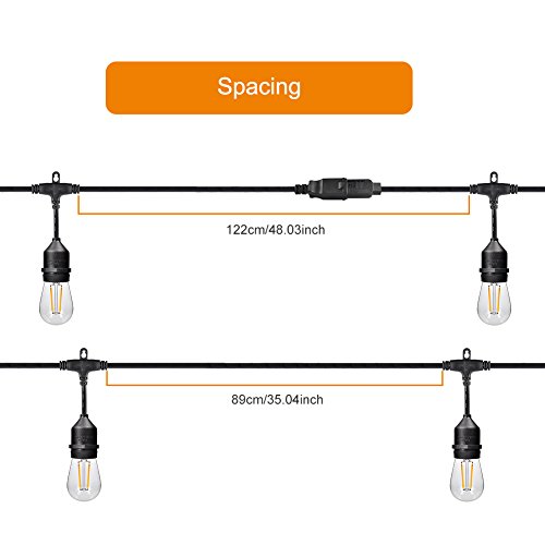 CONNECT 40 STRINGS: Total string light length is 48 feet, female socket on opposite end allows for connection of multiple strings(Max 40) for feet of beautiful patio string lights. Enough to withstand extreme hot or cold temperatures through summer and winter.