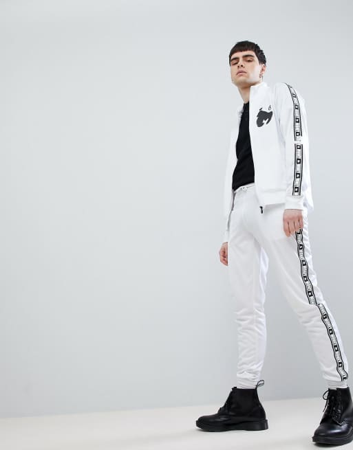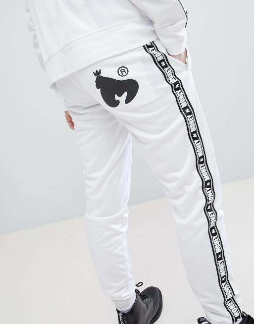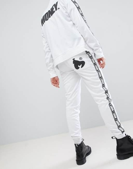 Money Stripe Tricot Track Pant In White With Contrast Side Stripe