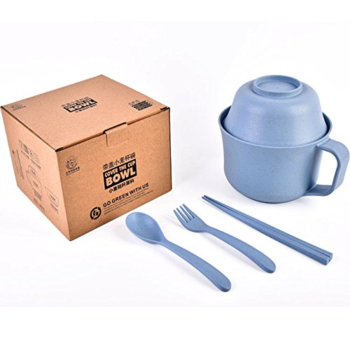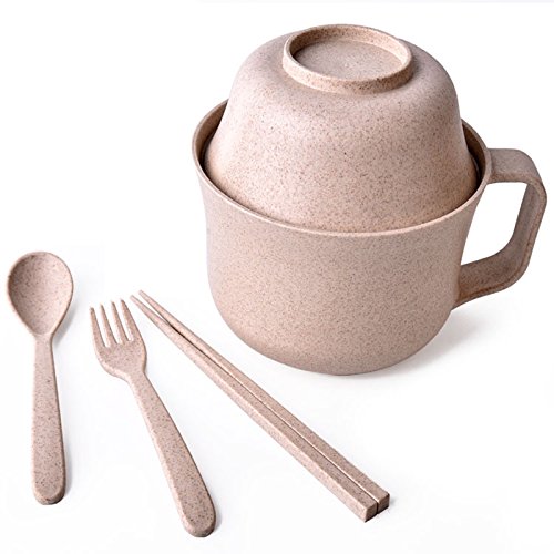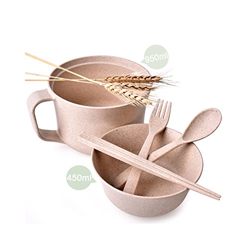 Healthy Kitchen Dinnerware Bowl Sets Eco Biodegradable Unbreakable Bowls Dinnerware with Fork, Spoon, Cup, Chopsticks Children Tableware Set (Khaki)