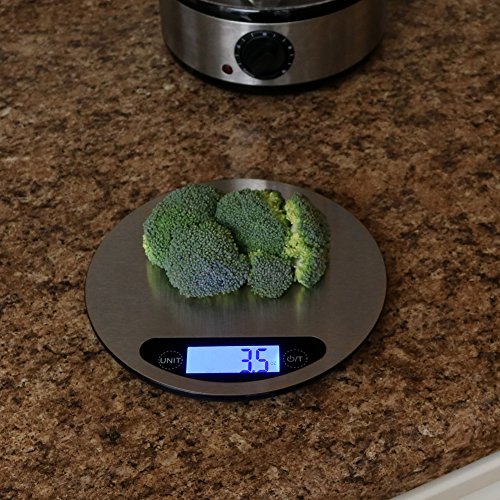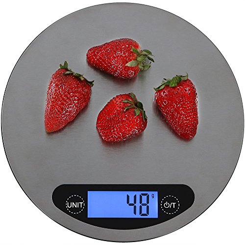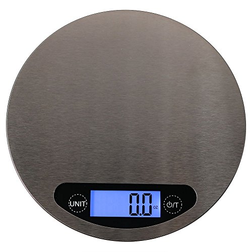 Sunnydaze Round Multifunction Digital Food Kitchen Scale, 11 lb./5kg, High Accuracy with LCD Display, Stainless Steel and Slim Design (Batteries Included)