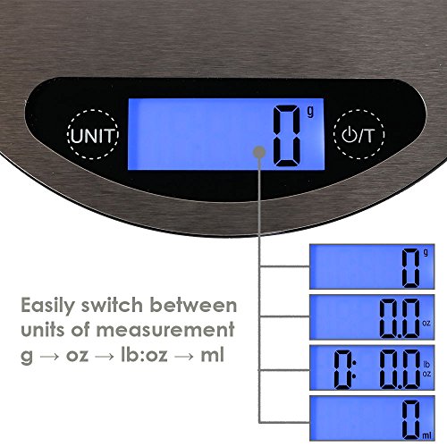 - Unit button gives you multifunctional weighing options such as gram, ounce, milliliter, and pound ounce (g, oz., ml, lb-oz), so you can use the mode that works best for your recipe.