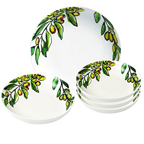 Lorren Home Trends PS5 Pasta Set 5 Piece Porcelain Olive Design, Multicolor