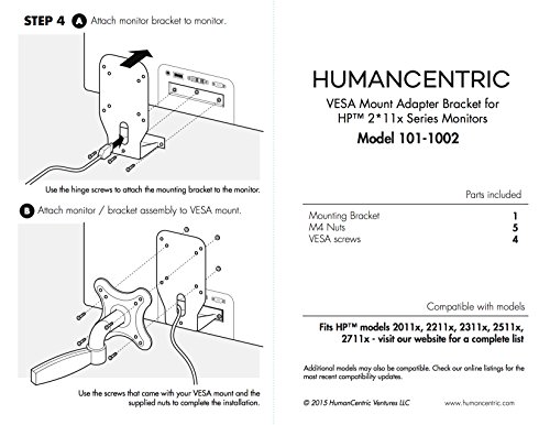- Title : VESA Mount Adapter Bracket for HP Monitors 2011x, 2211x, 2311x, 2511x, 2711x (V2) - by HumanCentric