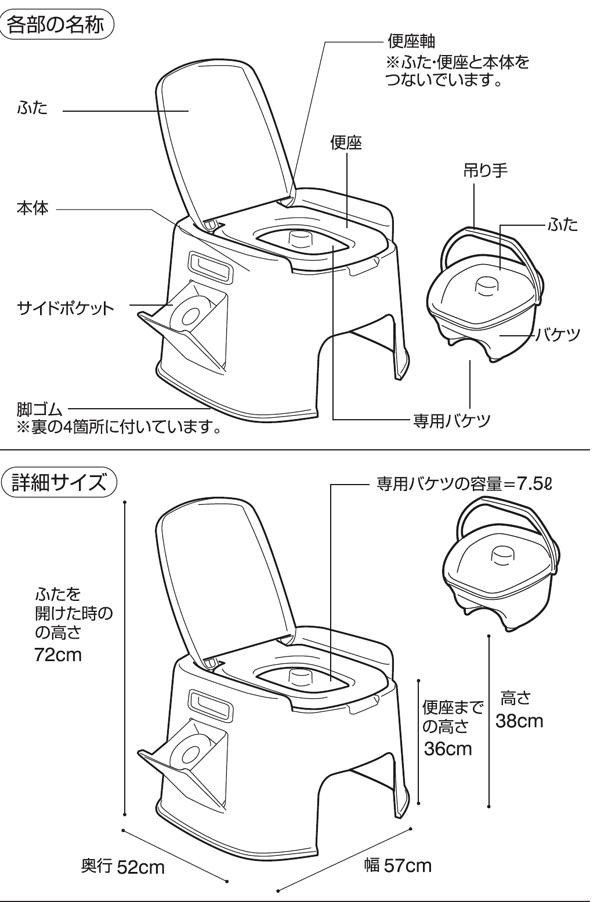 | 素材・材質 | 本体・他:ポリプロピレン 便座軸:スチール 脚ゴム:NRゴム |
