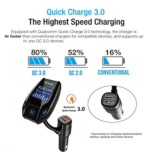 - [Hands-free calling]: Bralon FM transmitter with a build-in high performance chip that provides more stable fm signals, better anti-interference and noise reduction features.The built-in microphone provides you with an amazing hands-free function,you can safely and conveniently answer/hang off/reject/redial calls when driving.