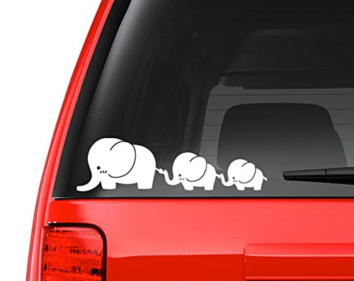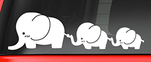 Cute Elephant Family Decal Sticker - White 5" Vinyl Decal for Car, Macbook, or Other Laptop