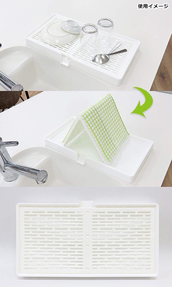 | 水滴が水抜き口から流れ出るので水捨てが不要です。すのこ板は取り外し式でお手入れが簡単!また、すのこ板には穴が開いており立てかけることもできるので、ふきん干しとしても使えます。 |