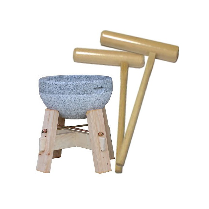 TM 떡부구(3 승용) 목받침대 절굿공이부 4점 세트【화강암구 노송나무목대 어린이용 절굿공이 어른용 절굿공이】