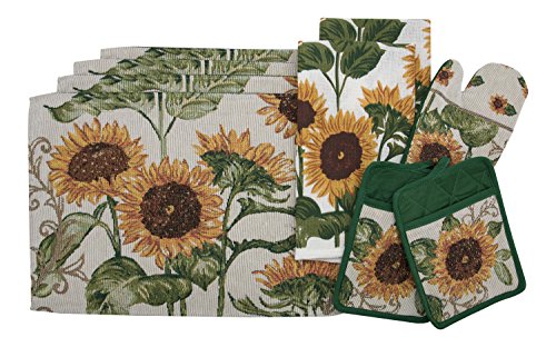 Summer Sunflower Deluxe Tapestry Kitchen Set - 4 Placemats, 2 Kitchen Towels, 1 Oven Mitt, 1 Potholder
