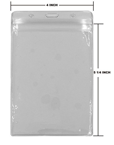 Heavy Duty ID Card Badge Holder with Resealable Zipper, Waterproof Type PVC ID Card Holder, Vertical Style, Clear