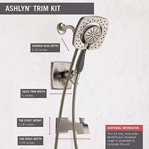 Delta T17464-SS-I Ashlyn Monitor 17 Series Tub & Shower Trim with In2ition Two-in-One Handshower Showerhead, Stainless