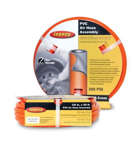 Legacy Air Hose, 3/8 in. x 50 ft., 1/4 in. Fittings, PVC, Orange - HL2850FO2-A02