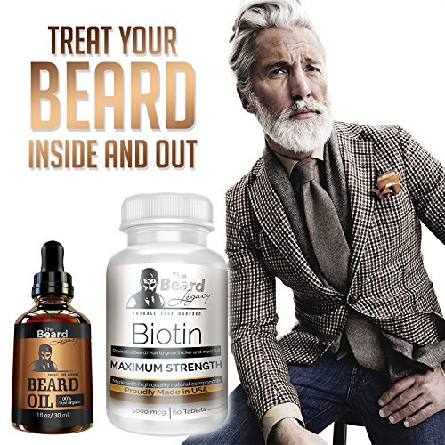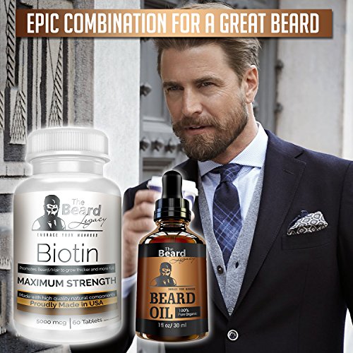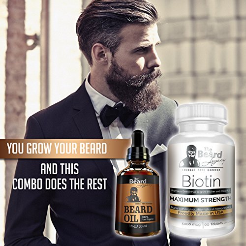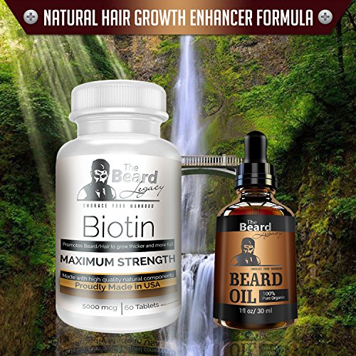 -. Binding : Health and Beauty -. Brand : The Beard Legacy -. EAN : 0601629793061 -. Feature : ENHANCED HAIR GROWTH - Biotin is the #1 supplement known by the medical community to promote fast acting Beard & Mustache Growth. / FULLER AND THICKER BEARD - 60 Capsules which create a Stronger Beard made Smoother & Healthier by the Organic Beard Oil (Included). / SMOOTHER AND CLEANER SKIN - The Beard Legacy Top Rated Amazon Beard Oil Eliminates Itchiness on the Face and Conditions the Skin, Beard & Mustache. / MADE IN USA - 100% Natural Products. Biotin made in the USA with Natural ingredients. Unscented Beard Oil Made with ARGAN OIL & JOJOBA OIL. / 30 DAYS GUARANTEE - If you don't see faster beard growth w/ thicker, softer, & smoother hair- we honor our unconditional 30 day money back guarantee. -. IsAdultProduct : 0 -. Label : TBL -. Manufacturer : TBL -. MPN : TBL-0100 -. PackageQuantity : 1 -. PartNumber : TBL-0100 -. ProductGroup : Health and Beauty -. ProductTypeName : HEALTH_PERSONAL_CARE -. Publisher : TBL -. Studio : TBL -. Title : BEARD GROWTH FORMULA - Biotin #1 Beard Growth Supplement + Beard Oil Unscented Combo Pack. Fastest Hair Growth & Smooth, Healthy Facial Hair & Skin by The Beard Legacy. -. UPC : 601629793061