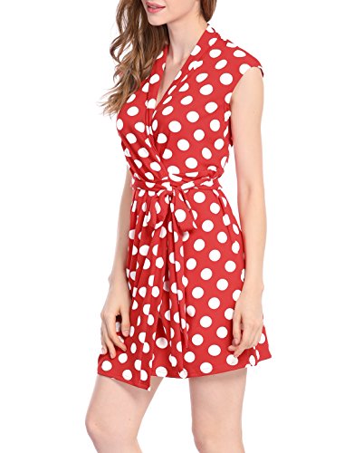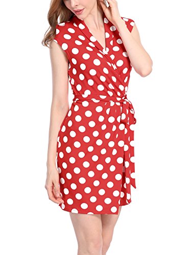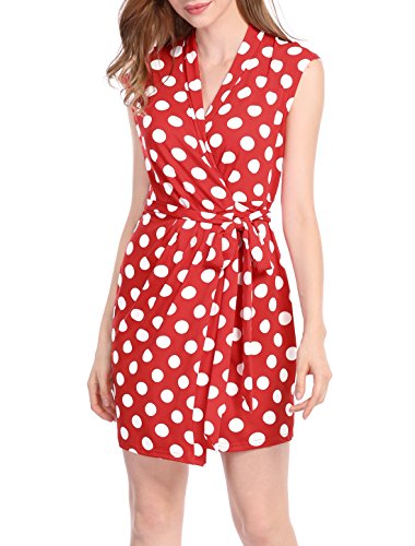 • This charming dress features allover classic polka dots print and sleeveless design. Styled in an effortlessly flattering wrap design, it is anchored by a coordinating sash. Extended shoulders and a ruched detail add a more sophisticated tone to keep the look work-ready and polish.