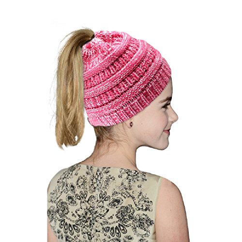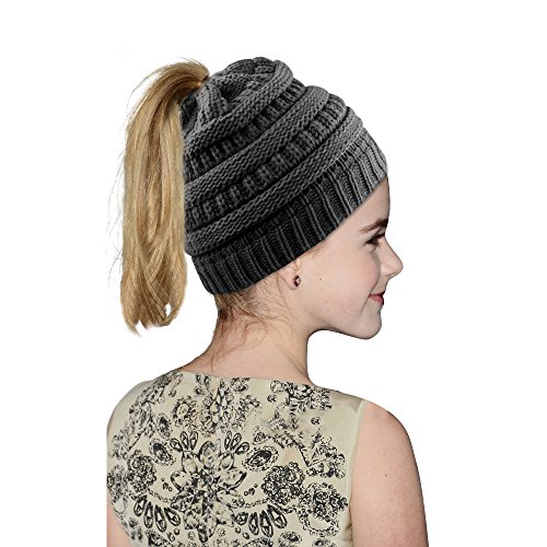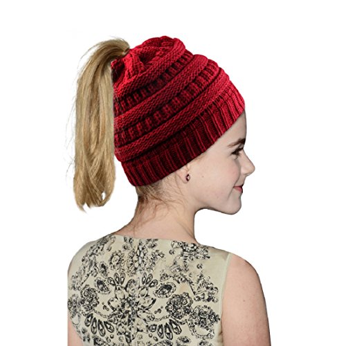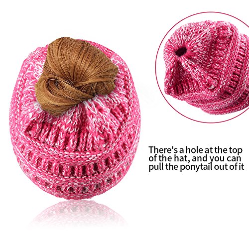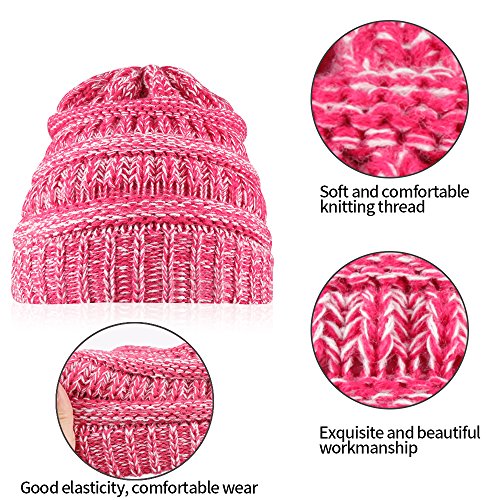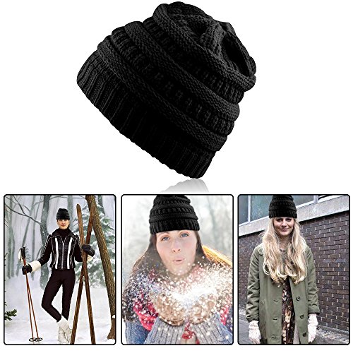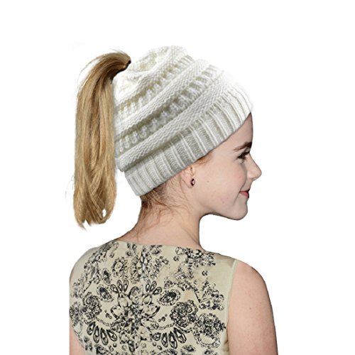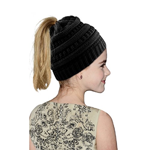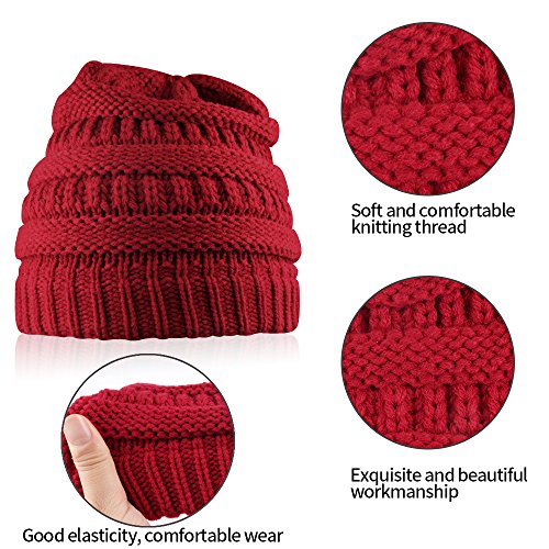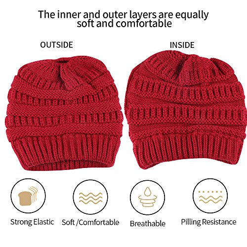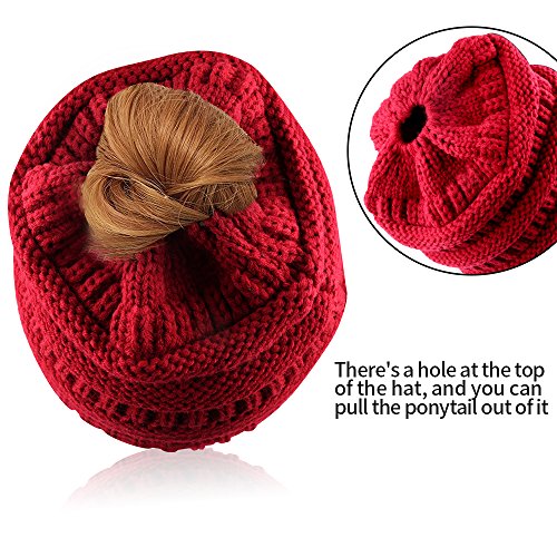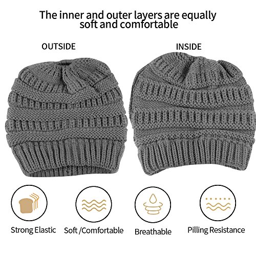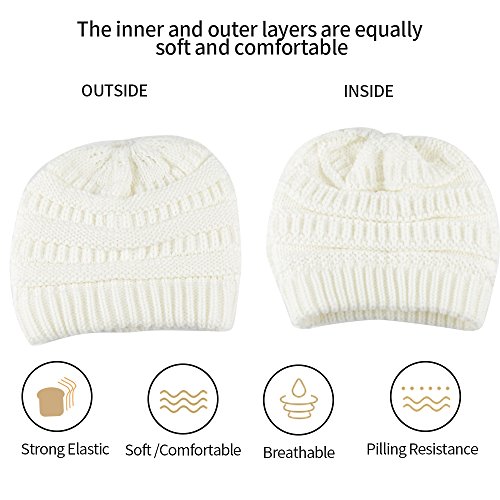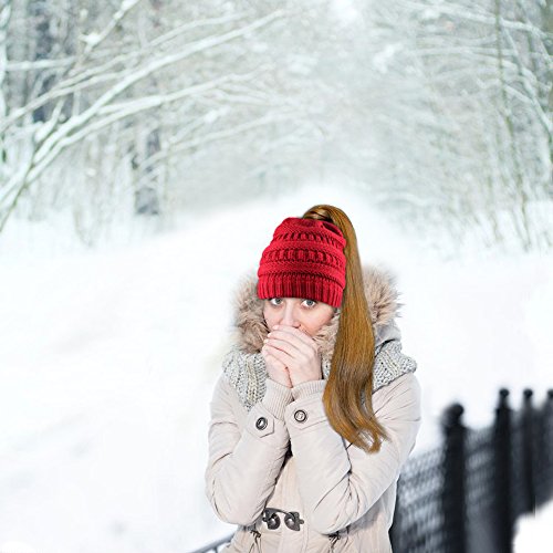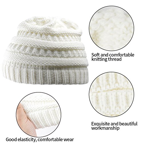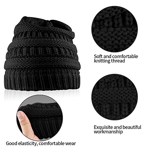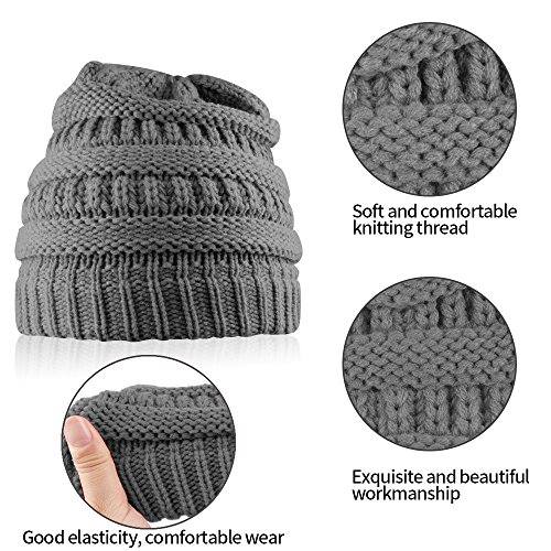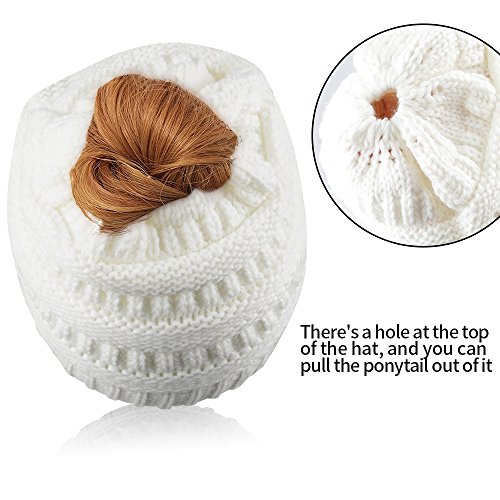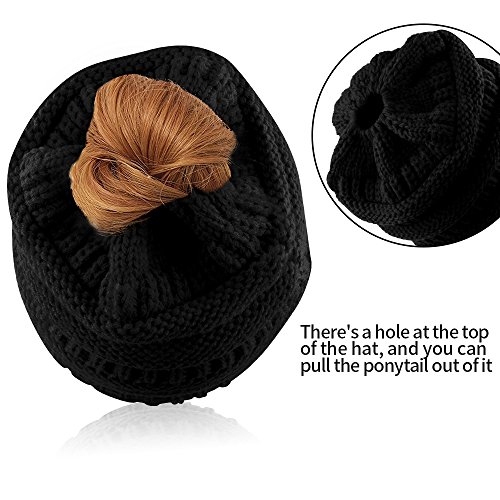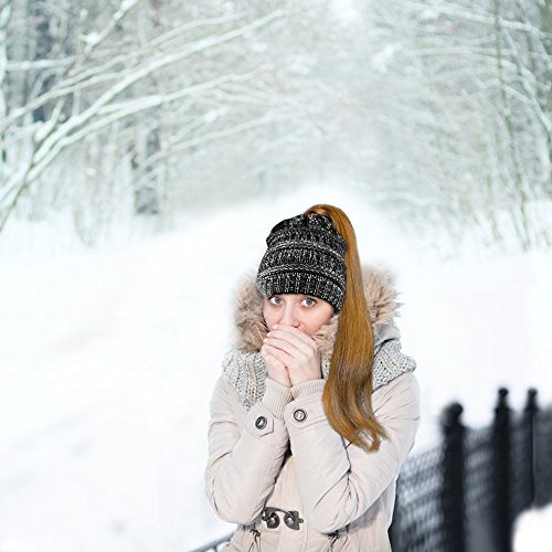 Vanzon Winter Warm Knitted Ponytail Beanie Hat Messy High Bun Beanie Soft Stretch Cap