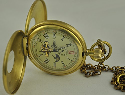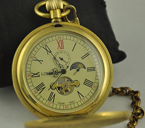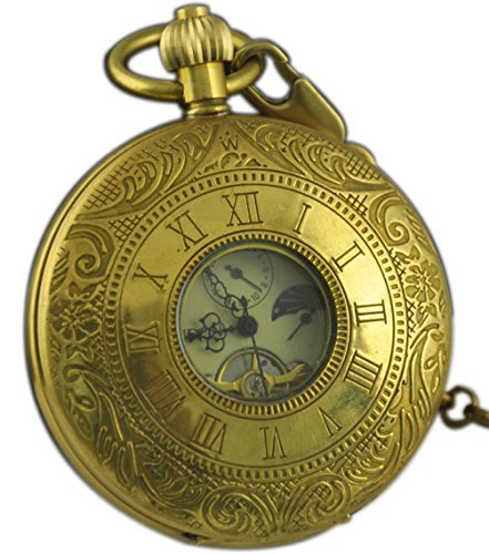 -. Title : VIGOROSO Men's Vintage Golden Copper Moon Phase Roman Numbers Hunter Hand Winding Mechanical Pocket Watch