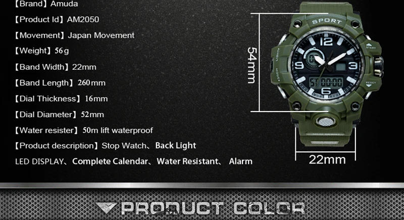Feature:Auto Date,Shock Resistant,Week Display,Water Resistant,LED display,Alarm